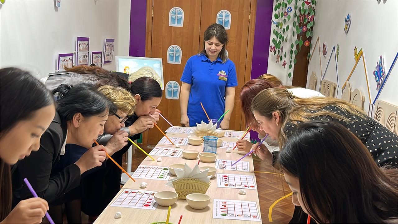 «Болашақтың ойын кеңістігі: қозғалыс, сөйлеу және мектеп жасына дейінгі балалардың нейроөркендеуі» шеберлік сыныбында логопед Тополева Наталья Николаевна балалардың әлеуметтік-эмоциялық дағдыларын қалыптастыруға және жартысаралық байланыстарды нығайтуға бағытталған сенсомоторлық даму технологиясын көрсетті.