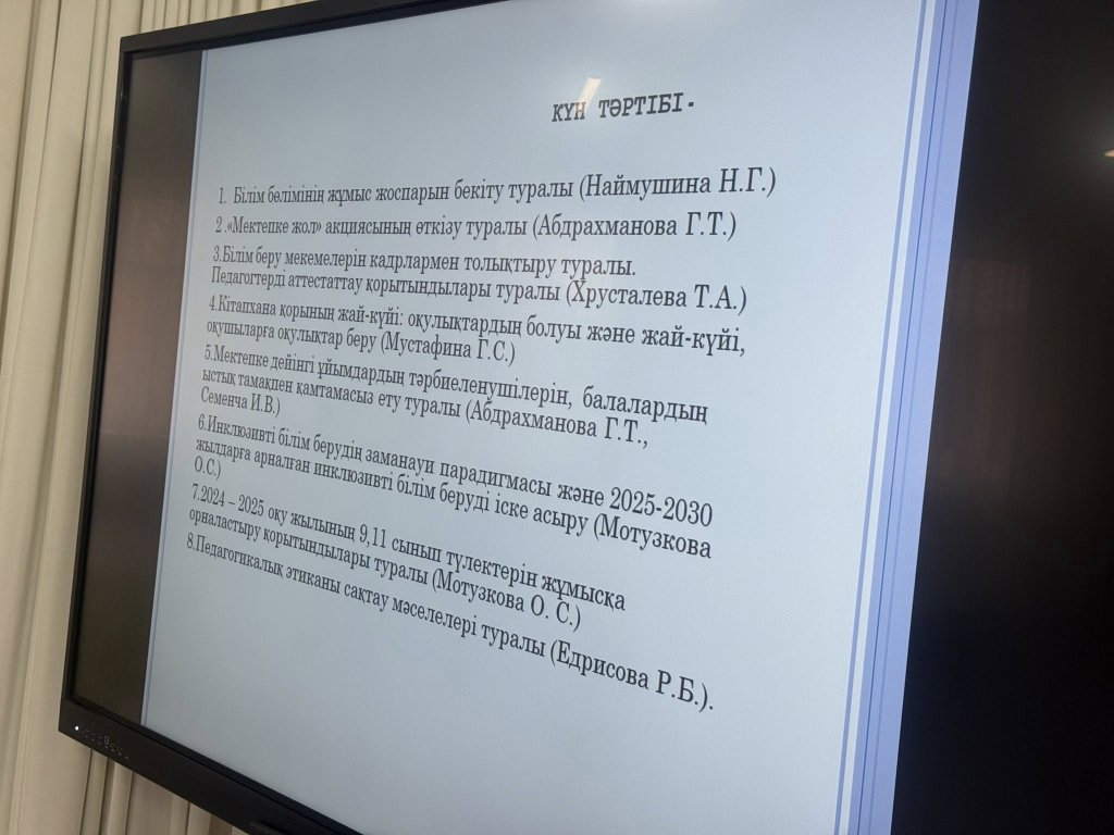 2025 жылғы 20 қазанда № 8 жалпы білім беретін мектеп базасында аудандық білім бөлімі Кеңесінің отырысы ауданның білім беру мекемелерінің басшыларының, білім бөлімінің мамандары мен әдіскерлерінің қатысуымеен өтті.