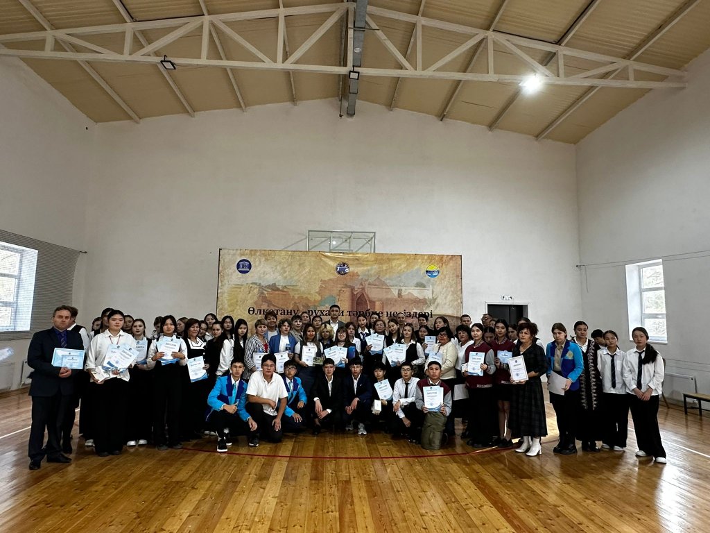 2025 жылғы 22 қазанда № 1 жалпы білім беретін мектепте 2025-2026 оқу жылының 1 тоқсанына аудандық конкурстар мен олимпиадалардың жүлдегерлеріне салтанатты құрмет көрсетілді: «Мемлекеттік тіл - менің тілім», «Тіл дарыны» олимпиадасы, «Ақберен» шығармашылық...