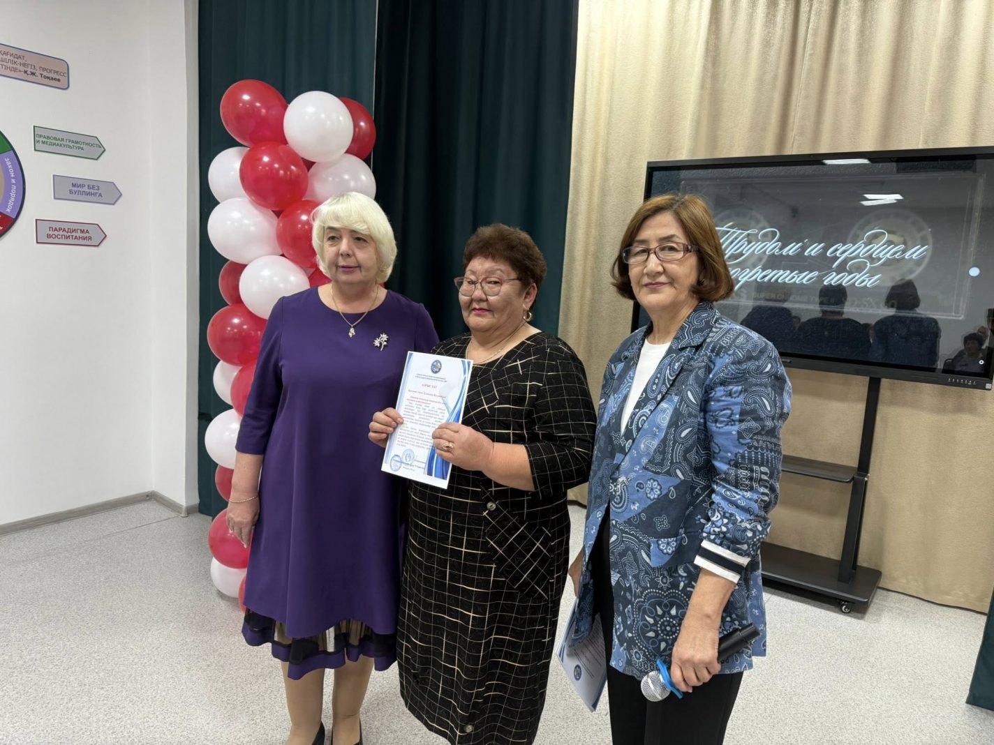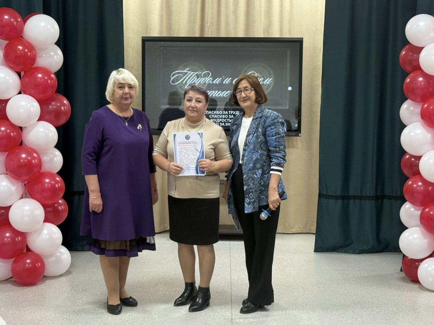 Білім бөлімінің басшысы Н. Наймушина іс-шараға қатысушыларды мерекелерімен құттықтап, олардың қазіргі ұрпақтың білім беру және тәрбиелеу ісіне қосқан үлесін атап өтті. Әр қатысушы алғыс хатпен және кәсіподақтың естелік сыйлығымен марапатталды. Педагогикалық ұжым мен мектеп оқушылары директор Г. Кизкенованың жетекшілігімен мерекелік концерт дайындады.