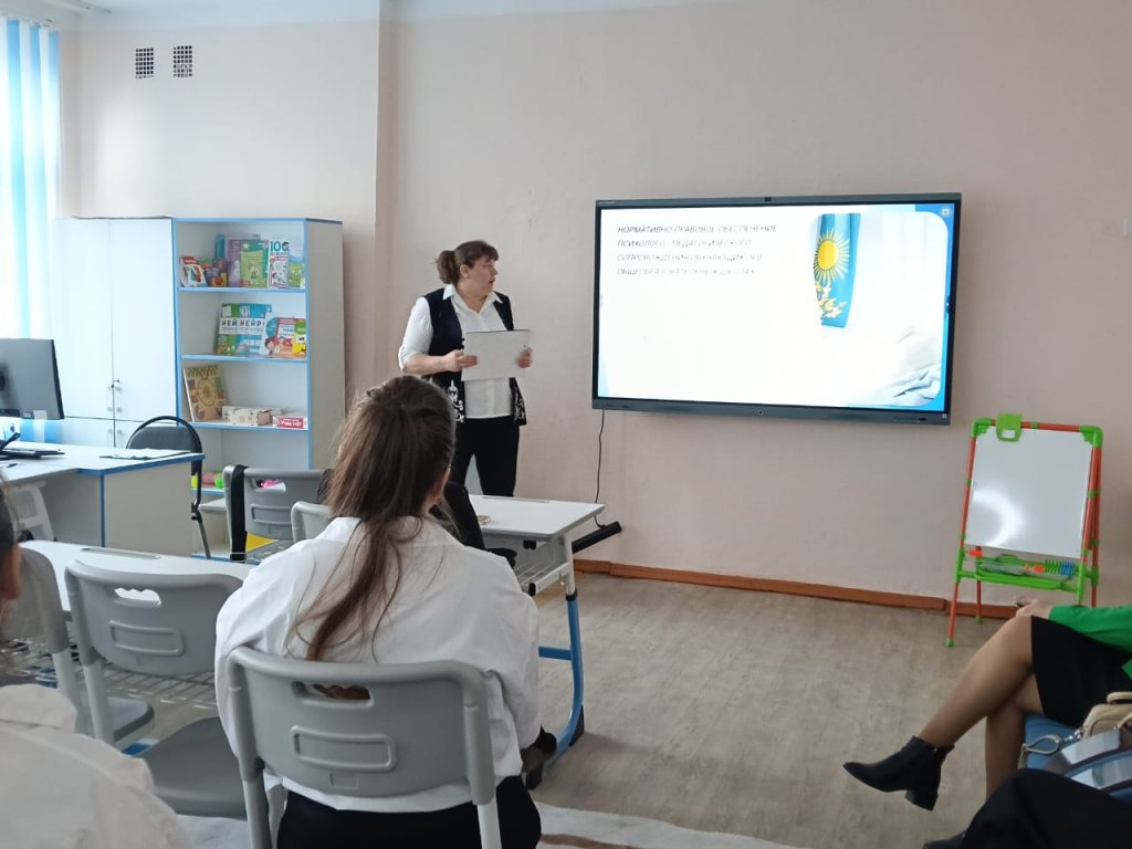 «Ерекше білім беру қажеттіліктері бар оқушыларға психологиялық-педагогикалық қолдаудың психологиялық аспектілерін» Атбасар қ. № 1 ЖОББМ ТКК мұғалім-дефектологы В.В.Маметбакова таныстырды.