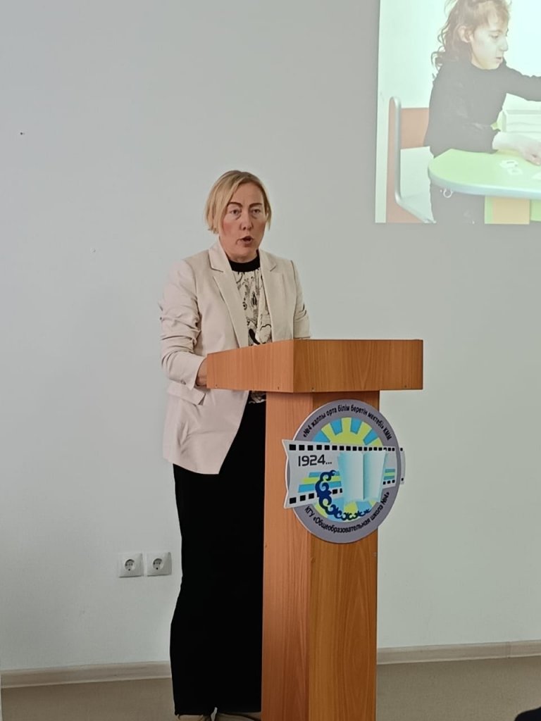 «Облыстың жалпы білім беретін мектептеріндегі арнайы сыныптардың қызметі туралы» Ақмола облысы білім басқармасының әдістемелік орталығының инклюзивті білім беруді ғылыми-әдістемелік сүйемелдеу бөлімінің әдіскері, арнайы (дефектологиялық) білім беру магистрі Жанғали Ілияс Әбілқазыұлы хабардар етті.