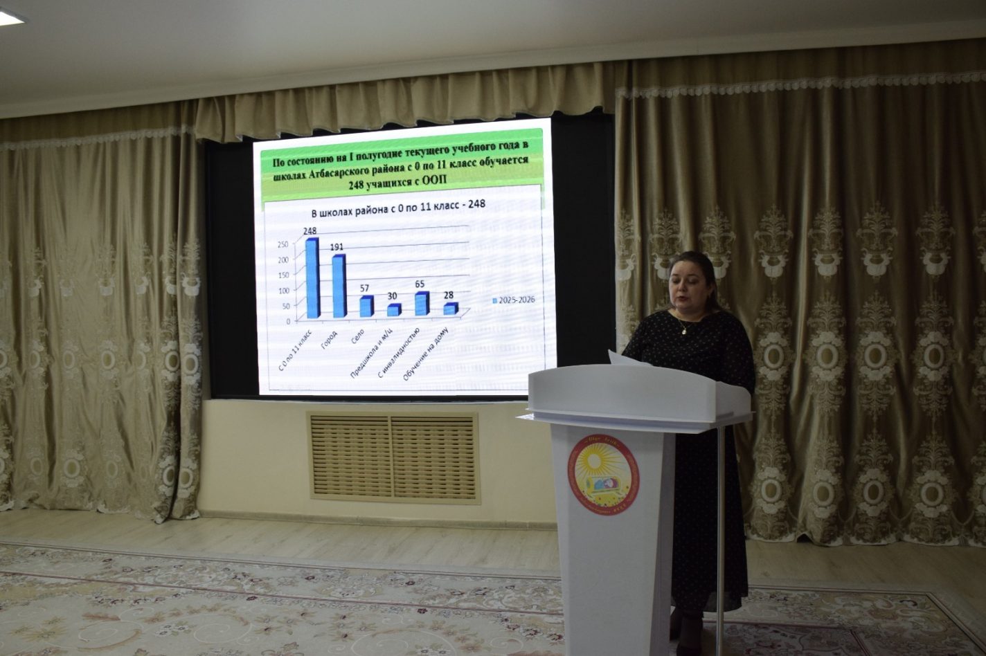 Инклюзивті білім беру жөніндегі әдіскер Мотузкова Оксана Сергеевна «Ерекше білім беру қажеттіліктері бар оқушылардың білім беру қызметінің мазмұны және оны ұйымдастыру» тақырыбындағы баяндамасында Атбасар ауданындағы инклюзивті білім берудің соңғы 3 жылдағы даму статистикасы мен серпінін ұсынды, сондай-ақ ерекше білім беру қажеттіліктері бар балаларға арналған білім беру процесін ұйымдастырудың негізгі бағыттарын белгіледі". Ол тиімді жұмыс қолжетімділік, вариативтілік және икемділік қағидаттарына, сондай-ақ психологиялық-педагогикалық тексеру деректерін міндетті есепке алуға негізделетінін атап өтті.
