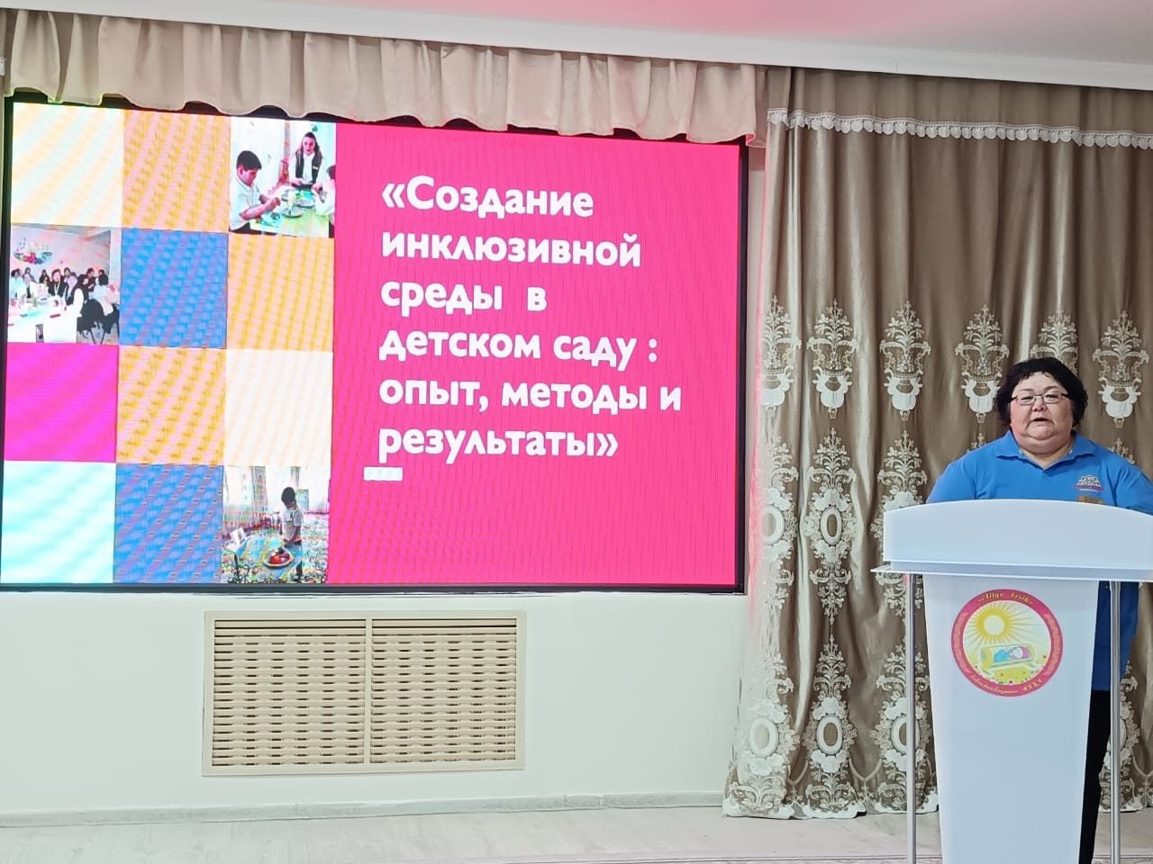 Жалпы бөлімде балабақша меңгерушісі, бірінші санаттағы басшы Жанаргүл Еркенқызы Толғамбаеваның «МДҰ-да инклюзивті орта құру: тәжірибе, әдістер мен нәтижелер» тақырыбындағы баяндамасы барлық балалар үшін қолжетімді және жайлы орта қалыптастыру жөніндегі практикалық қадамдарға арналды. Материалдық-техникалық жарақтандыру, кеңістікті бейімдеу, мамандардың өзара іс-қимылы және нәтижелер мониторингі мәселелері қаралды.