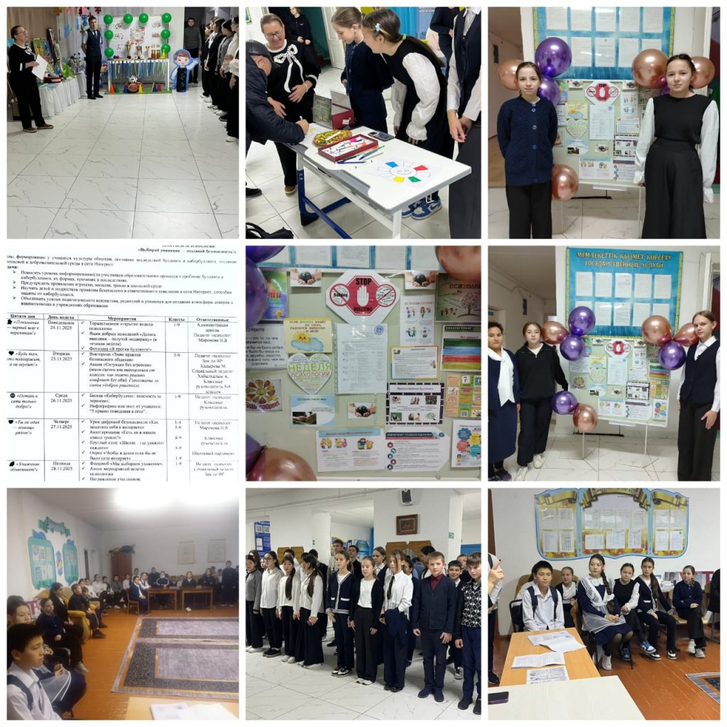 2025 жылдың 24-28 қараша аралығында Атбасар ауданының білім беру мекемелерінде «Буллинг пен кибербуллингке жол жоқ! Құрмет және қауіпсіздік аумағы» тақырыбы бойынша «Құрметті таңда-қаупсіздік құр» ұранымен психология апталығы өтеді.