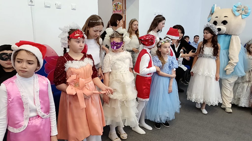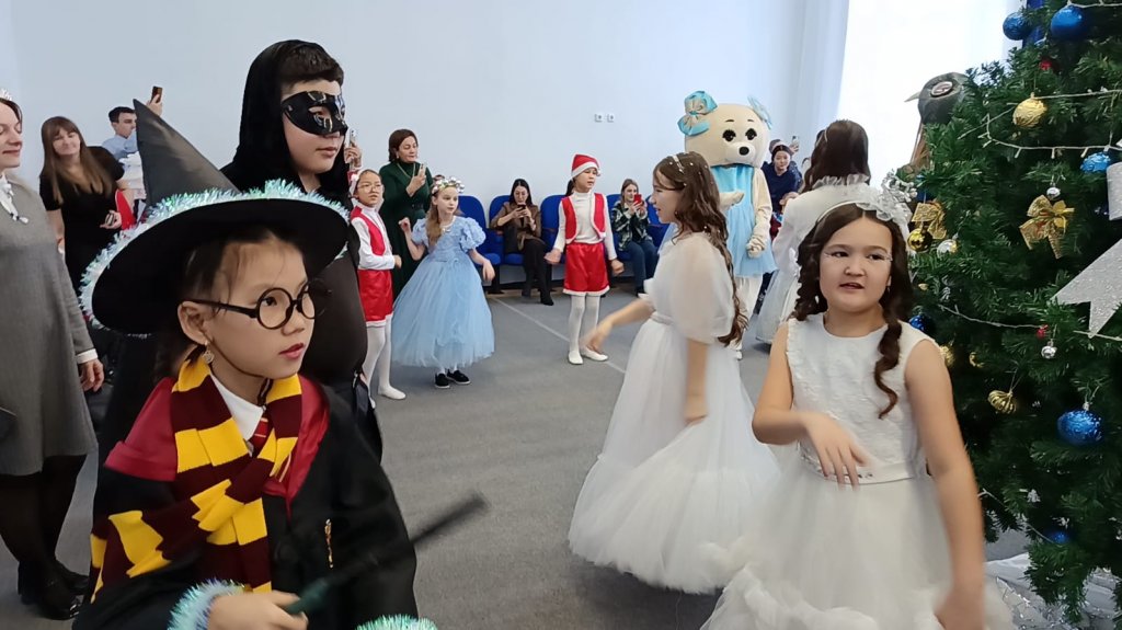 Мерекеге әдемі, жарқын жаңа жылдық костюмдер киіп, залды ертегі бейнелерінің нағыз калейдоскопына айналдырған қатысушылар ерекше мерекелік атмосфераны толықтырды, зал сиқыршылармен, ханшайымдармен, супергеролармен және сүйікті ертегі кейіпкерлерімен толықты - балалар барлығын жаңа жылдық жарқын костюмдермен қуантты.