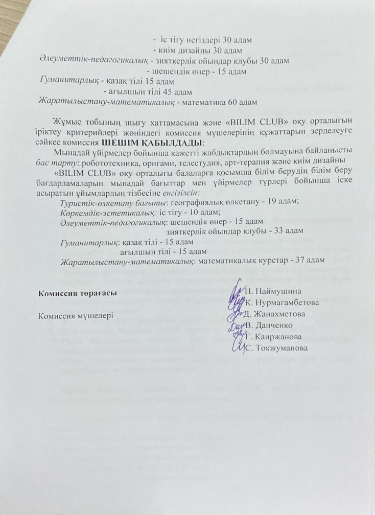 БІЛІМ БӨЛІМІНІҢ ҚЫЗМЕТКЕРЛЕРІ