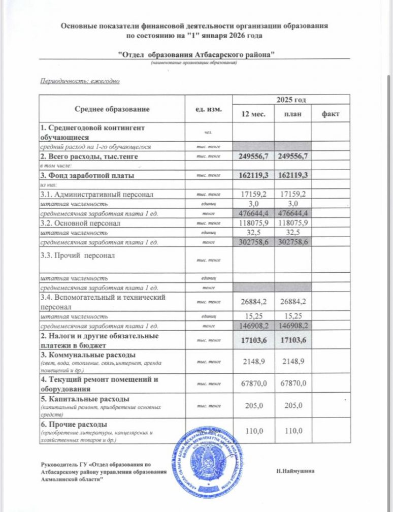 2025 жылға дейінгі 12 айдағы білім беру ұйымы қызметінің негізгі қаржылық көрсеткіштері