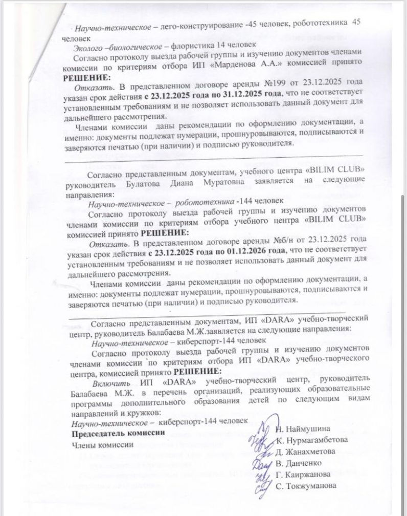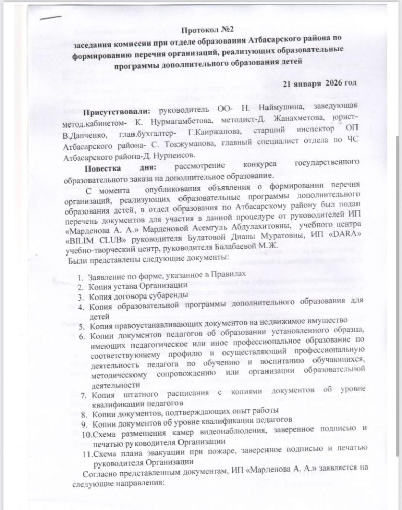 Балаларға қосымша білім берудің білім беру бағдарламаларын іске асыратын ұйымдардың тізбесін қалыптастыру жөніндегі комиссия отырысының № 2 хаттамасы
